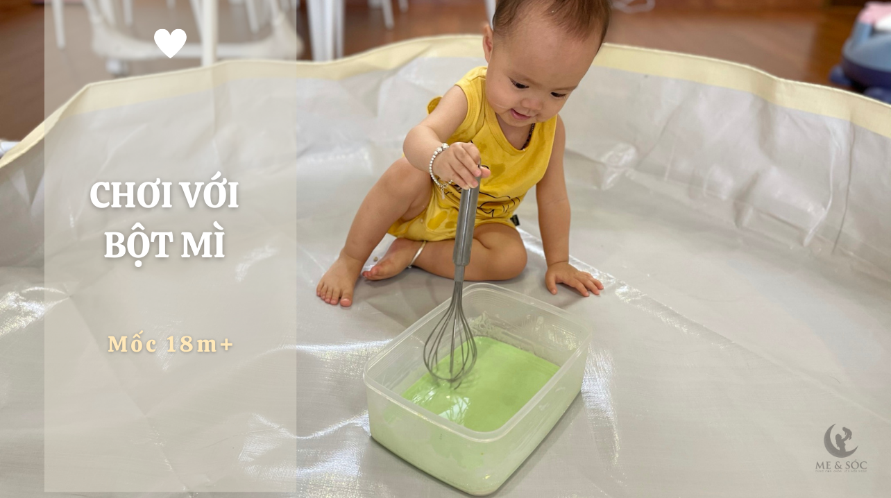 Chơi với bột mì là một hoạt động thú vị và sáng tạo cho trẻ nhỏ. Để chuẩn bị cho hoạt động này, bạn chỉ cần trộn bột mì với nước ở dạng loãng và thêm màu thực phẩm để tạo ra những màu sắc hấp dẫn. Sau đó, bạn có thể đưa cho trẻ dụng cụ khuấy trứng để trẻ tự do khám phá.