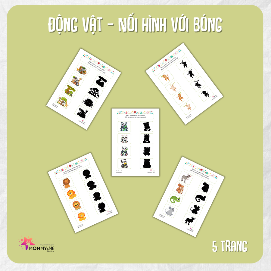 Khám phá bộ sản phẩm giáo dục “Nối hình với bóng – Động vật” dành cho trẻ từ 3-6 tuổi! Bộ 5 trang này sẽ giúp bé yêu của bạn phát triển nhận thức về hình dạng và tư duy không gian một cách thú vị. Với thiết kế đường nét rõ ràng, bé sẽ dễ dàng ghép mỗi con vật với bóng đen tương ứng, từ đó khơi dậy sự sáng tạo và khả năng quan sát của trẻ.